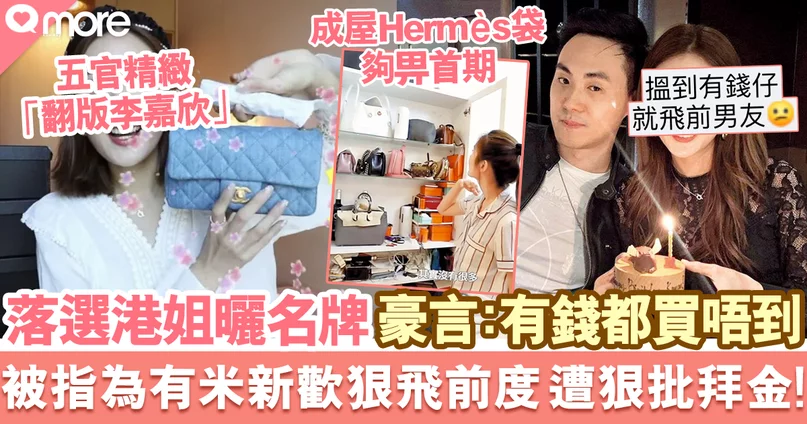 在蔡嘉欣的IG內,幾乎每日都拎不同名牌手袋,絕大部分都係Hermès同Chanel,有數得計總值肯定超過五十萬,不過佢就曾在無綫的樓盤節目內大呻未夠首期上車,又話唔想畀一成首期供幾十年樓,節目一出即被明眼網民鬧爆佢啲名牌袋都夠畀首期。不過作為野心勃勃的港女,或者蔡嘉欣想買幾千萬以上的豪宅,區區幾十萬真係唔夠呢?與其賣袋換首期,冧男友送樓可能仲可行。