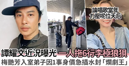 現年53歲的譚耀文曾在90年代演過不少經典作品,如《壹號皇庭IV》、《新上海灘》等,但是在2005年起,譚耀文就周不時中港兩邊走,而近年,更專注在內地市場發展,現已甚少在香港市場現身。不過,近日譚耀文就在社交媒體上載了一條短片,片中的他一人拖6件行李現身機場,身為堂堂藝人竟然沒有助理幫忙,令人好奇他近年在內地發展是否不順暢?!