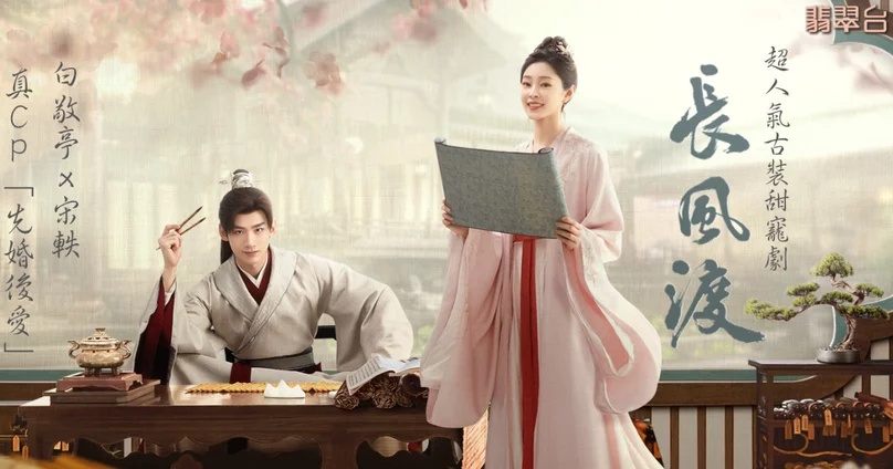 《長風渡》根據墨書白的同名小說改編,是一部描述兩個性格迥異的人在錯位婚姻中,從相互抵觸到共同成長的溫馨故事。柳玉茹(宋軼飾)是揚州布商的女兒,自小遭遇生母病重、庶母冷淡、父親忽視,15年間做了模範閨秀。然而,期盼美滿婚姻的她,卻被家中安排嫁給揚州紈絝顧九思(白敬亭飾)。顧九思誤會柳玉茹出於利益才嫁他,對她一度嗤之以鼻。柳玉茹認識到不能將命運寄託於婚姻與他人,決定跟隨顧母學習經商,真實、獨立地實現自我價值。經過刻苦努力,她成功通過了顧母的考驗,並逐漸經商成功。在此過程中,柳玉茹重新認識顧九思,發現他內心的善良與真誠,兩人的感情逐漸靠近。然而此時,揚州節度使的暴行,導致人民流離失所,顧家舉家逃亡。顧九思為結束混亂,從捕快做起,官至戶部尚書,並與志同道合者一同掃除積弊,輕稅輕徭。而柳玉茹則利用商業手段使百姓安康,兩人共同譜寫了一段盛世佳話。