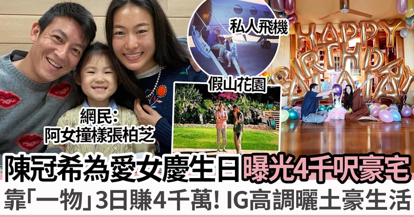 陳冠希為女兒慶生 網民驚艷似張柏芝?與老婆住4000呎豪宅:私人花園+泳池