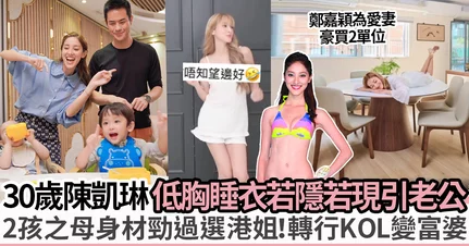 自跟鄭嘉穎結婚後,誕下兩名兒子的陳凱琳亦甚少在幕前演出,因此她就轉攻KOL市場,周不時接拍時裝、食品廣告。一月份時,陳凱琳為曲奇餅品牌宣傳,在家中露台拍攝一系列美照,意外將家中美景曝光。