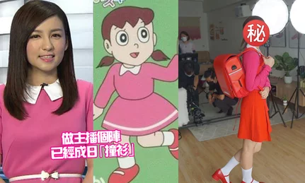 已經轉型做KOL的前無綫新聞主播陳嘉倩,曾於幕前穿上純情粉紅長袖衫,連白色領口都十足十,似足卡通角色靜香。