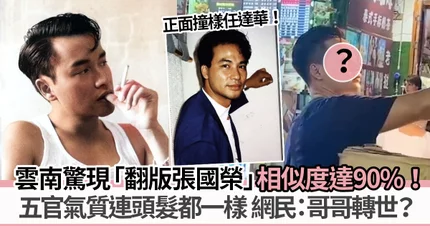 照片中的燒烤店檔主不論是五官、神髓,甚至髮型也與張國榮在《阿飛正傳》中的造型極度神似,有網民覺得相似度高達9成,更震驚高呼:「哥哥回來了嗎?」