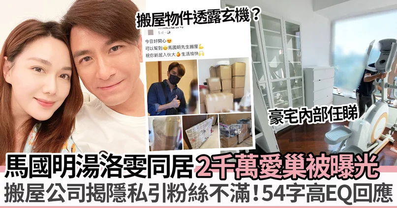 貼文中更上載了多張照片,不但附上了和戴上口罩的馬明合照,還有多張搬屋詳情和新屋內部環境照片,讓馬國明和湯洛雯的新愛巢徹底曝光。照片清晰可以看到馬明的一箱箱私人物品和傢俬,還能清楚看到新屋的內部環境和超大玻璃窗景觀,帖子出街後迅即引起熱議,有大量粉絲湧入並在貼文下留言表達不滿,批評該搬運公司侵犯了馬明和靚湯的私隱,又指兩人是變相「被賣廣告」。