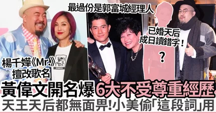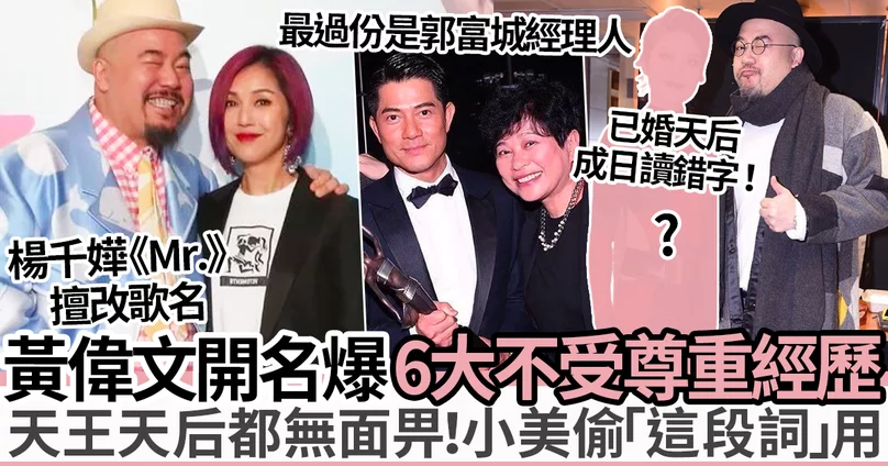黃偉文Wyman怨婦式開名狂數6大天王天后「罪狀」直認不受尊重愈爆愈多:郭富城經理人小美「偷嘢」!