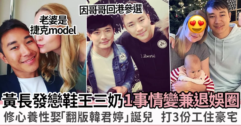 2006年香港先生冠軍黃長發,早年因與「鞋王三奶」李姿霆公開姊弟戀關係後,轟動全港退出娛樂圈。上年,黃長發於社交平台公布,與捷克藉模特兒喜獲麒兒,哥哥黃祥興也留言祝賀。黃長發一家三口生活幸福美滿,修心養性的他更為家庭打三份工,盡好爸爸和好老公的責任。