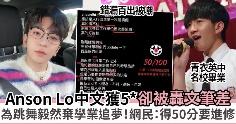 Anson Lo出文被批中文水平低 被網民改文指有待改善 實情教主中文獲5*