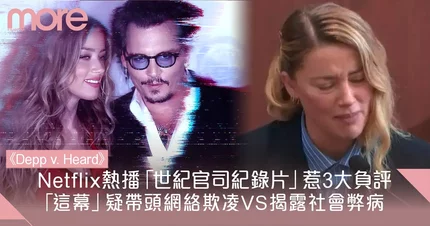 Netflix新推的紀錄片《Depp v. Heard》,除咗紀錄返Johnny Depp同Amber Heard的世紀官司之外,仲有埋唔少「評論家」如一啲TikTok、Twitter、YouTube的KOL、網民對呢單官司的分析同睇法,雖然令觀眾唔駛下下咁悶聽法律論點,不過唔少人就認為咁樣會令描述唔夠完整且帶有偏見,而且紀錄片中普遍言論都係支持Johnny Depp。
