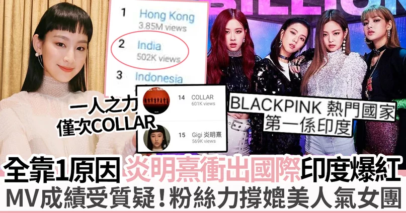 炎明熹出道半年就有咁多印度粉絲,無疑令不少人都百思不得其解,不過有唔少粉絲認為一向熱愛音樂歌舞的印度人被炎明熹的歌聲俘虜亦不無道理,今次的數據更是衝出國際的證據確,又以韓國女團BLACKPINK做例子,直指BLACKPINK點擊率最高的地方亦非韓國,而是印度、泰國以及印尼穩佔三甲,即使以「城巿」作為單位,首爾亦只排行第三,是榜首曼谷的約三分之一。然而,YouTube Music Charts目前並不適用於香港,網民只能透過搜尋Hong Kong找到本地排名,並檢閱榜內歌手的表現。當中炎明熹的資料只能透過搜尋「Hong Kong」、「過去7日」的圖表中所顯示,她現時排名第十五位,僅次於新出道女團COLLAR。