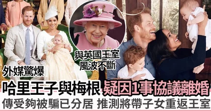 哈里王子與妻子梅根自2016年開始拍拖到2018年結婚後不斷傳出風波,梅根的非裔身分多次受到攻擊,而哈里王子每次都會公開指責種族歧視的人,為愛發聲,又為了梅根主動放棄王室頭銜,陪梅根到美國發展,可以說是相當愛梅根。沒想到如今二人傳出離婚消息,相信一對子女很大機會跟隨爸爸回到英國王室繼續生活,不過離婚消息還有待確認。