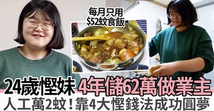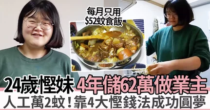 慳錢攻略 ︳24歲慳妹4大慳錢方法儲62萬買樓上車 每月$52食飯、行路返工