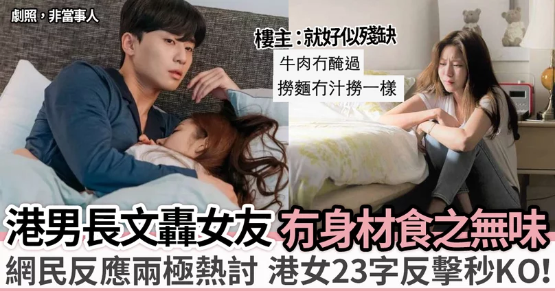 港男轟女友冇身材慘過「咁樣」 網民反應兩極熱討 女生23字秒KO!