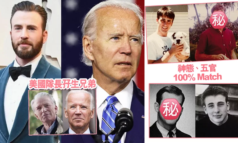 【拜登撞樣】美國大選結果出爐,拜登當選!第46屆美國總統由民主黨由77歲拜登(Joe Biden)勝選,而賀錦麗(Kamala Harris)則成為美國副總統。大選一完結,網上就開始瘋拜登25歲時的照片,更和Marvel 電影中的39歲《美國隊長》Chris Evans撞樣!