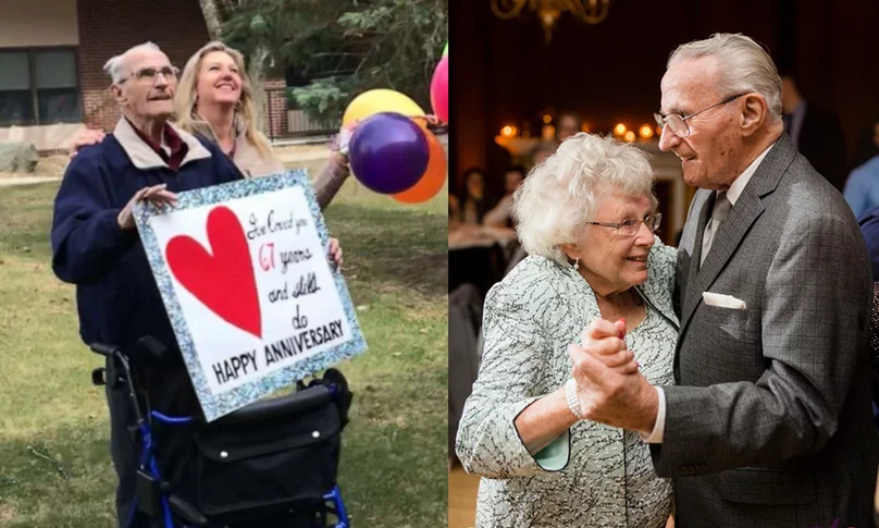 伯伯和婆婆這對恩愛老夫婦,即使已結婚67年仍舊十分重視他們的結婚紀念日。每年的結婚紀念日,他們都會相擁跳舞一起慶祝這一天。而女兒則表示今年是父母首次分開度過的結婚紀念日。伯伯接受訪問時表示:「我很難過,因為我想她下來跟我見面,但我知道她不可能下來。」
