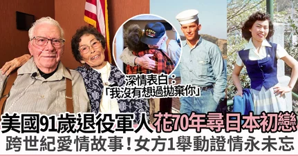 相隔70年重逢日本初戀情人!美國91歲退役軍人深情表白:「我沒有想過拋棄你」