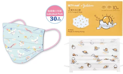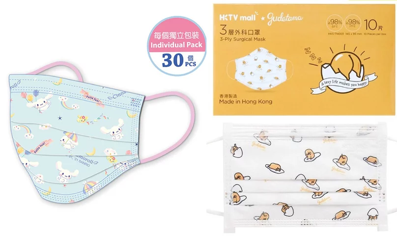 HKTV mall 聯乘 SANRIO 推出3層外科小顏口罩,卡通角色包括My Melody & Kuromi 、布甸狗款式、蛋黃哥及AP鴨!