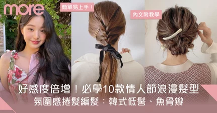 情人節怎能少得了浪漫的公主頭?再加上可愛的蝴蝶結編髮細節,讓約會髮型不再單調。綁髮後可以用捲髮棒向內、外捲出自然的弧度,增加知性氣質又不失時尚感。