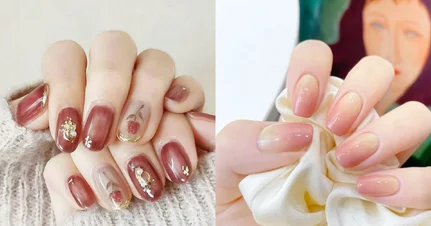 顯白水嫩的紅豆沙色搭配氣質裸色,怎麼都不會出錯的標準的溫柔搭配色,粉嫩粉嫩的,也很適合做新年美甲。