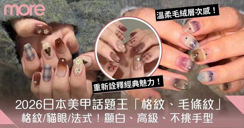 美甲款式2026:日本美甲話題王「格紋」