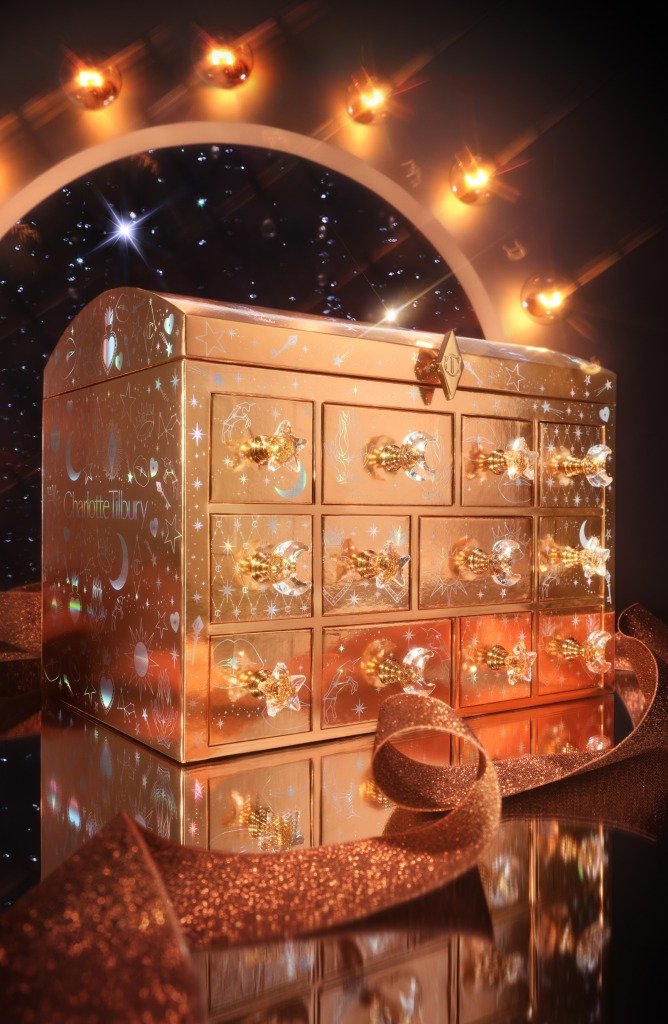 Charlotte 聖誕倒數日曆再度回歸,內容更豐富。每個珠寶抽屜暗藏品牌熱賣護膚與彩妝產品,從Magic Cream魔法面霜、Airbrush Flawless Setting Spray定妝噴霧,到貨裝Pillow Talk Beauty Light Wand等,為你帶來星光魅力。打開抽屜即發現驚喜,禮盒更可作首飾盒收藏。今年新增兩款貨裝,旅行與正裝全面升級,是歷年最超值的限量倒數月曆!