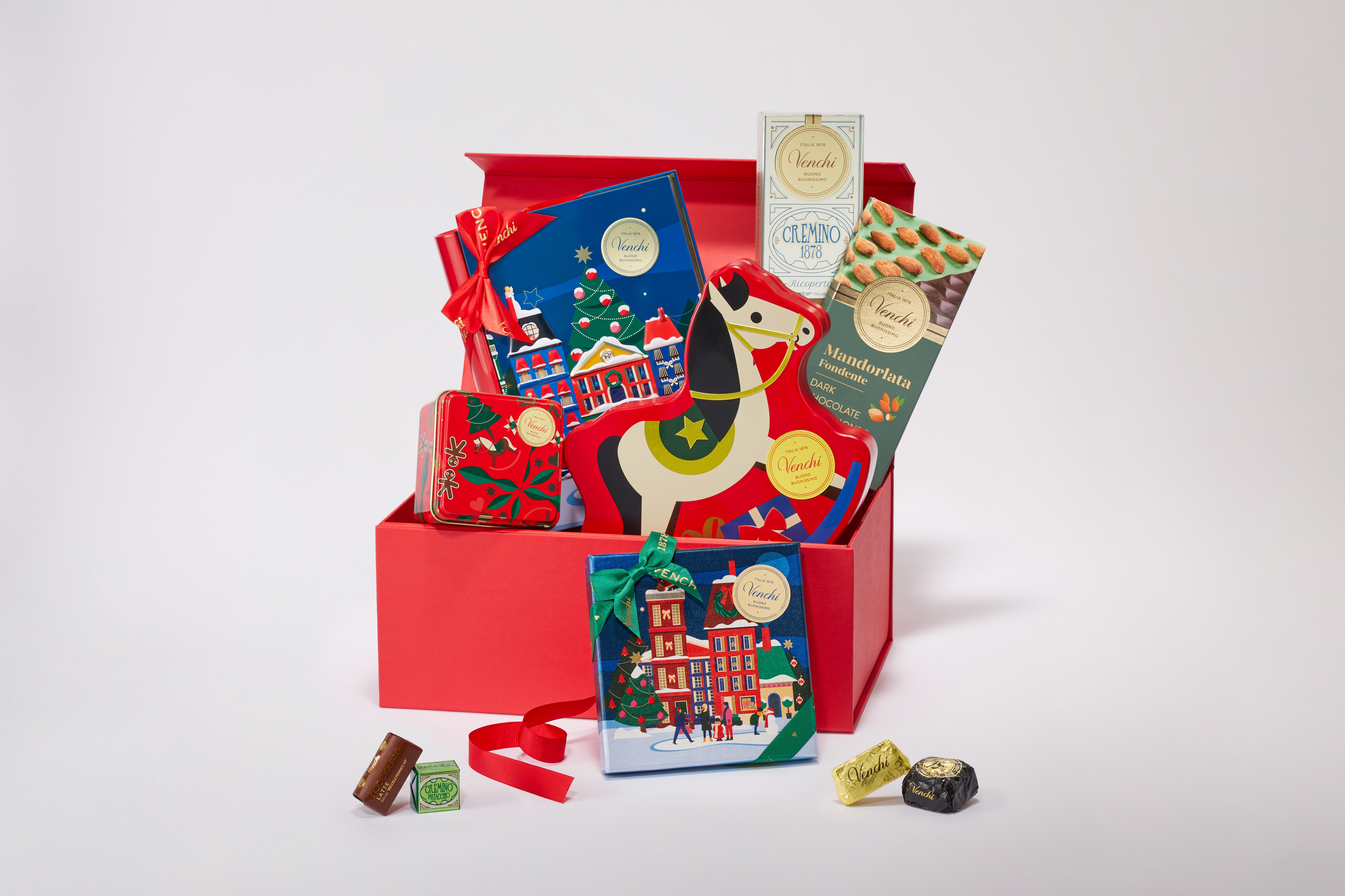 Venchi 2025聖誕限量系列提供多款精美禮盒和鐵盒,內含各式精選美味巧克力。包括圓形、聖誕樹形、星形吊飾、小木馬等不同設計,適合佈置家居與與親友分享。配合節日氛圍,還有限量Chocoviar意式聖誕麵包,滿載驚喜,為聖誕佳節增添甜蜜與歡樂。