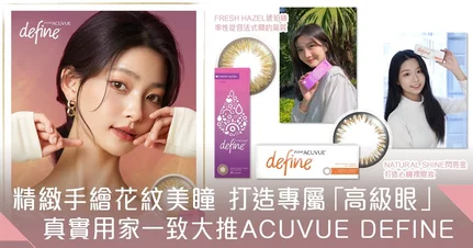 ACUVUE DEFINE兩大系列︰DEFINE FRESH大自然色系及DEFINE CLASSIC經典大地色系,針對亞洲女性的眼睛而設計,3大賣點加上顯色夠時尚,無論氣質系女生、活潑系女生、型格系女生都Carry到,一試愛上!