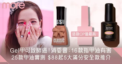 消委會曾就市面上25款水溶性樹脂指甲油進行測試,當中有5款Gel甲油就獲消委會評為5分滿分產品,即睇Gel甲油推介。