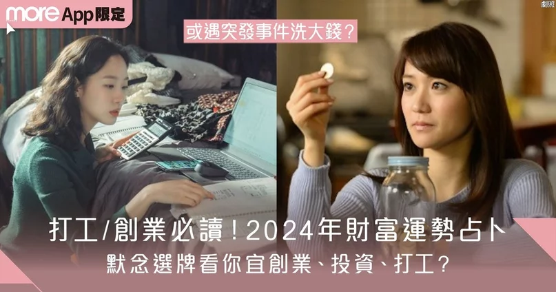 2024年你會有許多想做的事(消費目標)或新的事業計畫。因此,財富上有留不住的狀態。最好把這種消費轉化做穩健的理財投資或學習上,增進自己。有些人可能會轉變工作,生活或財運顯示出不夠穩定的形態。但有利於自由業者。(Slasher)