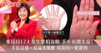 掌紋分析|麥玲玲揭17大女掌紋定富貴 :手小有少奶命 三峰起=有樓收租