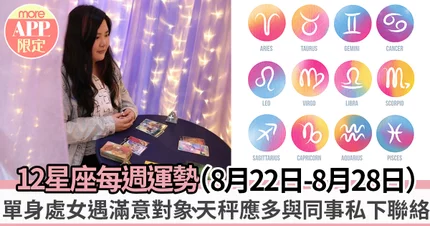 12星座每週運勢22/8-28/8|山羊工作或會食死貓、水瓶與伴侶缺乏信賴