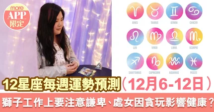 12星座每週運勢6/12-12/12|獅子座工作上要注意謙卑、處女座因貪玩影響健康(More App限定)