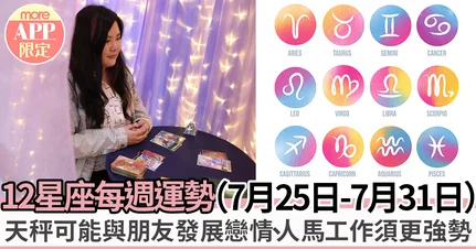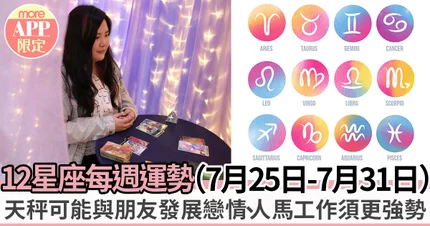 12星座每週運勢25/7-31/7|金牛難以發展新戀情、獅子工作受限制