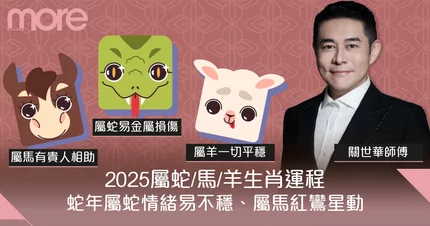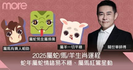 2025蛇年十二生肖運勢已經揭曉!想得悉來年的感情、事業、健康運勢是否順利,是否有貴人相助?立即查看關世華師傅為屬蛇、馬、羊的生肖提供的運程分析及開運錦囊,助你在新的一年裡時來運轉!祝願大家在蛇年裡身體健康、光彩照人、萬事如意!