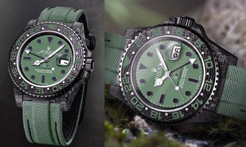 向來有不少改裝品牌專為Rolex而設,如MAD Paris、Phantom Lab及CRM Jewelers等,而比利時手錶改裝品牌Designa Individual,簡稱DiW,向來擅於改裝勞力士,最常改裝Daytona、GMT-Master II或Sky-Dweller等,最近推出一款GMT-Master II新作名為Hunter,採用綠碳纖維物料打造,可謂霸氣十足。