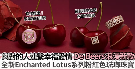 慶祝情人節,最想寄望與心儀的人確認關係,共同邁向幸福。高級珠寶品牌De Beers Jewellers 以美好愛情為設計概念,於浪漫時節推出全新De Beers Enchanted Lotus系列粉紅色琺瑯珠寶,為這自家品牌經典設計、代表永恆純潔的蓮花圖騰鑽飾,添上甜蜜氣息,守護摰愛。