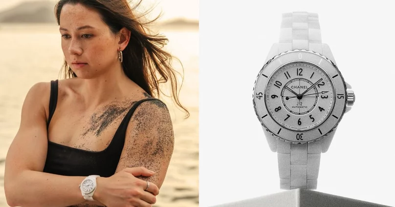 Chanel邀請到女飛魚何詩蓓演繹經典的J2腕錶,耐磨的白色陶瓷和精鋼配搭出優雅別緻的外型,配備高精準石英機芯,防水性能200米,無論白色或黑色款都輕鬆配搭運動服、上班或週末約會的造型。
