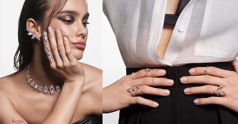 Fiery系列以標誌性的前衛設計呼應Messika的時尚傳統。品牌創辦人Valérie Messika為珠寶賦予無限混搭的可能性:尖角可以向上或向下,疊戴配搭不同顏色的純金和不同大小的美鑽,讓佩戴者自由配搭,突顯個人風格,綻放與別不同的耀目火彩。