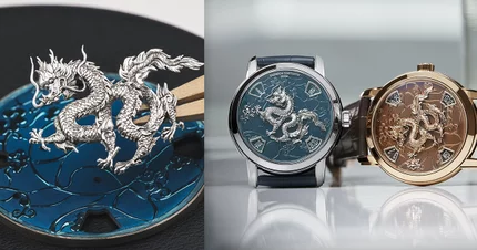 Métiers d’Art藝術大師系列《The Legend of the Chinese Zodiac中國十二生肖傳奇》腕錶再次推出兩款限量25枚的時計傑作,以慶祝中國農曆的龍年,同時向龍的神話故事致敬。這兩款腕錶由950鉑金和18K 5N粉紅金精心打造,40毫米的優雅錶殼內完美結合了手工雕刻和琺瑯彩繪工藝。