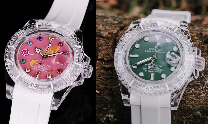 Rolex貴為夢幻品牌,在不少人心中是一生中必有的單品。不過Rolex某些大熱型號如Datejust或Submariner,在街上撞錶率其實極高。不少錶友為避免情況,除了換上NATO或訂製錶帶外,更衍生不少外國Rolex改裝品牌,如今次介紹的Phantom Lab及CRM Jewelers便是其中之一。不過,相比擅於改裝黑色的MAD Paris不同,Phantom Lab及CRM Jewelers皆精於把Rolex錶款改裝成透明設計,不少人卻表示似Swatch及G-Shock,這種設計是能否打動女生芳心?
