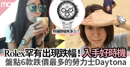 Rolex跌價︳Rolex手錶是近年不錯的投資,於二手市場上一直具保值及升值潛力大,尤其是炙手可熱錶款Daytona,近年價錢升幅認真誇張,當中不少款式更升至幾倍價錢。不過於過去2個月竟出現突破性跌幅!名錶網Watchanalytics最近公布,6款勞力士Daytona於3月至5月的市場價格報告,驚喜地發現Daytona當中有6個款式竟然跌價,當中更包括被瘋搶的鉑金冰藍錶面,哪究竟跌了多少?難得跌價,似乎是錶迷入手的好時機!