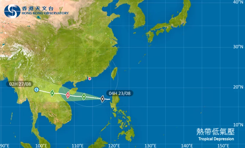 熱帶低氣壓位於北緯 171 度,東經 1177 度 (即香港之東南偏南約 680 公里)。中心附近最高持續風速每小時 55 公里。位於呂宋以西海域的熱帶氣旋會在未來一兩日橫過南海中北部,大致移向海南島南部及以南海域。