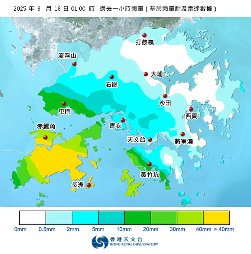 過去一小時本港雨量分佈: