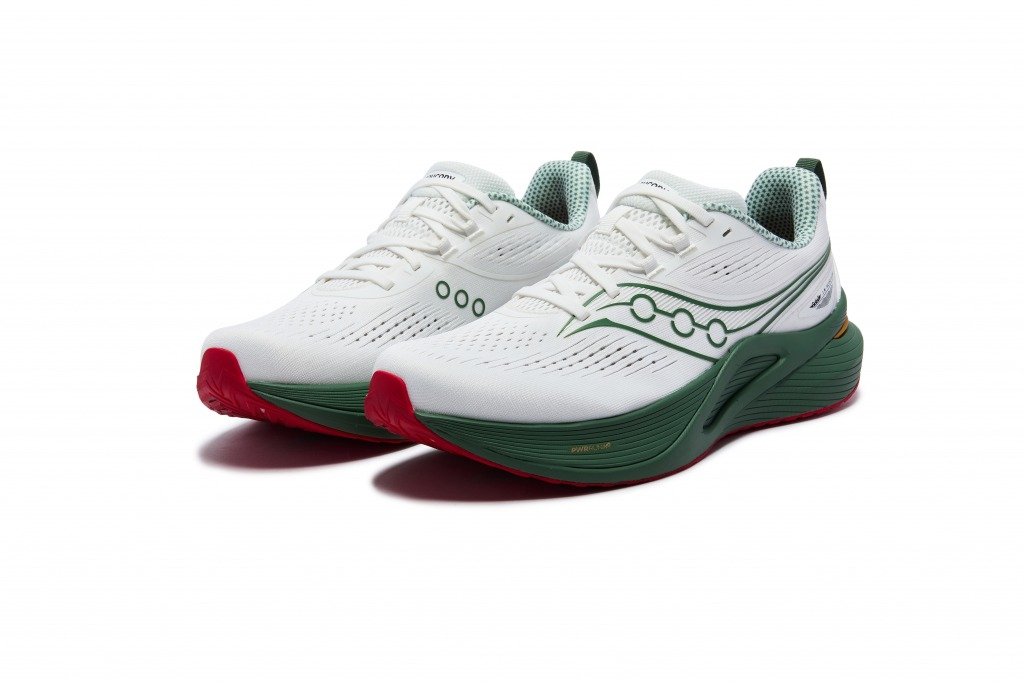 美國百年專業跑步品牌 Saucony 推出 TEMPUS 3 HK「香港城市特別款」,以「跑者說故事」為主題,由本地跑者團隊全程主導構思、拍攝與視覺形象,親自記錄屬於香港的跑步故事。TEMPUS 3 HK 的設計靈感源自極具代表性的渡海交通文化,鞋身以深綠配純白重現經典船身色調,綠白交織間仿如渡輪掠過維多利亞港。 上白下綠的鞋身配上金色鞋跟與紅綠撞色鞋底,內外側印上「港」字、星形及「上層」字樣,細節呼應雙層渡輪結構與港式活力。 鞋側線條及後跟設計模仿船身破浪的流動感,而鞋墊與內襯則以星形與木紋呈現船艙地板與木座質感,讓每一步都像置身渡輪之中,將香港印記藏進跑者步伐。