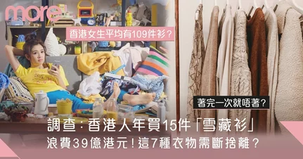 綠色和平曾調查「本港市民衣服消費習慣」指出香港人常一時衝動購物。若以20至49歲的人口作計算,估計便浪費達39.4億元金額在衣物上。它們更發現香港女士平均有109件衣物,比台灣女士足足多3成。而港人平均約有15件只穿了一至兩次便棄掉的衣服。小編以平均每件$100計算,每年我們便枉花下$1,500。在現今經濟環境不穩定情況下,大家一定要謹慎消費,一於不要再買這7款衣物!