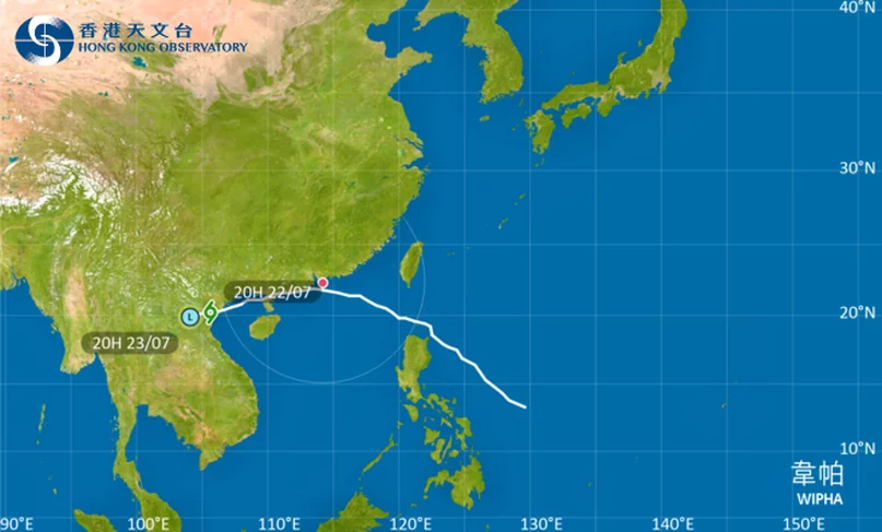 颱風韋帕最新消息|天文台表示,韋帕會在今明兩日橫過越南北部並逐漸減弱。SundayMore整合颱風路徑、預測位置等,亦提供颱風影響下的受影響航班、旅遊保險賠償資訊。