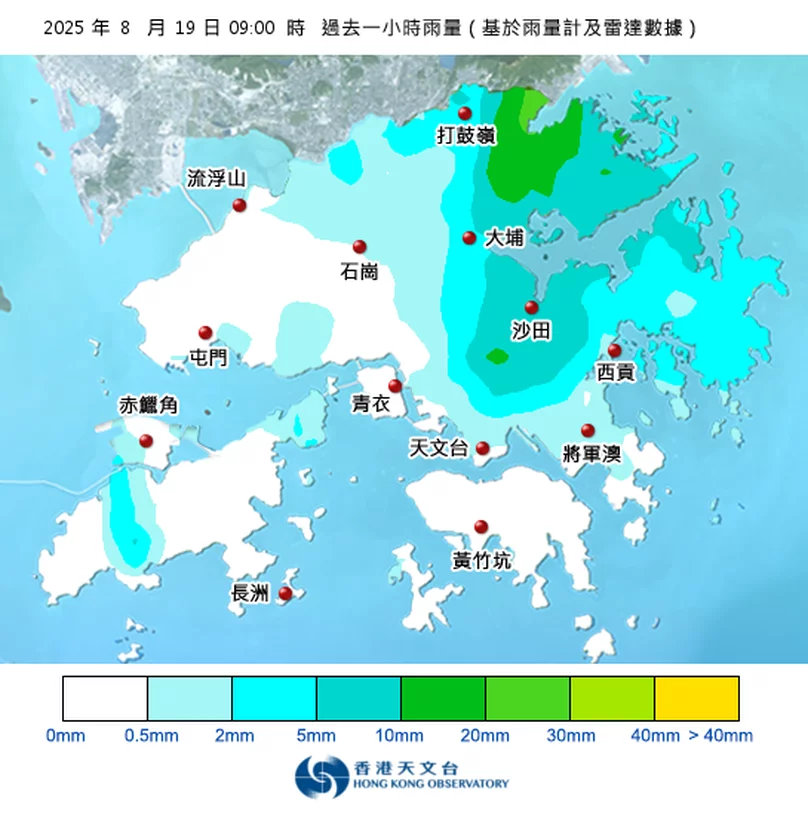 黃雨警告於上午9時41分生效!附天文台各區雨量分佈圖