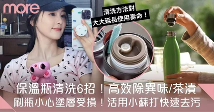 保溫瓶清洗方法你知多少?踏入秋冬天,保溫杯、暖水壺又要出動了!專家指保溫杯不可盛載酸鹼值過高的飲品,包括:酸性果汁、奶類、乳酸飲品及中藥……等,以避免侵蝕不鏽鋼塗層,嚴重更可致金屬中毒。同時,長時間裝著飲品的保溫杯,很易殘留咖啡味、茶垢,甚至負責瓶身連防漏的橡膠圈也會遭殃。其實只要用小蘇打、檸檬酸等隨手可得的小物便可正確清洗,一於看看教學,燜燒杯都可以這樣洗!