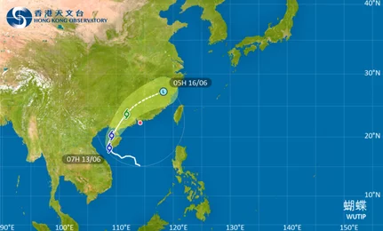 颱風蝴蝶最新消息|天文台表示,蝴蝶今日會掠過海南島西部,隨後移向北部灣至雷州半島。SundayMore整合颱風路徑、預測位置等,亦提供颱風影響下的受影響航班、旅遊保險賠償資訊。