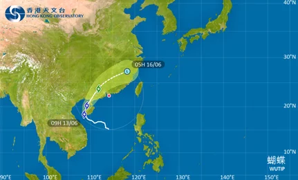 颱風蝴蝶最新消息|天文台表示,蝴蝶今日會掠過海南島西部,隨後移向北部灣至雷州半島一帶。SundayMore整合颱風路徑、預測位置等,亦提供颱風影響下的受影響航班、旅遊保險賠償資訊。