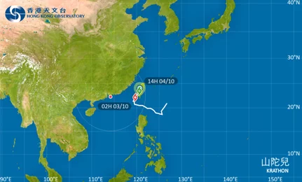 颱風山陀兒位於北緯 222 度,東經 1197 度 (即香港以東約 570 公里)。中心附近最高持續風速每小時 145 公里。山陀兒會在今日橫過台灣並顯著減弱。